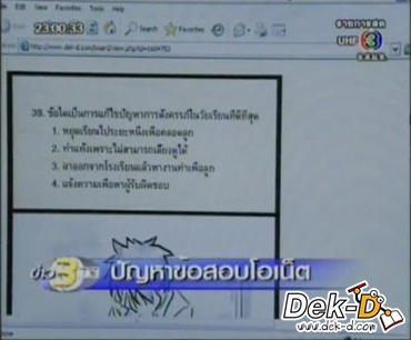 สวัสดีครับ เด็กดีตามติดทุกวินาทีสำหรับปัญหา O-NET ล่าสุดค่ำวานนี้ รายการข่าวสามมิติ ทางทีวีสีช่อง 3 โดยคุณกิตติ สังหาปัด ได้ต่อยอดประเด็นเพิ่ม โดยไปสัมภาษณ์ อ.อุทุมพร จามรมาน ผู้อำนวยการ สทศ. ถึงเรื่องการตั้งคำถามในข้อสอบ โดยในเนื้อหาสกู๊ปข่าวได้มีอ้างอิงข้อมูล และภาพการแสดงความคิดเห็นของน้องๆ ในเว็บเด็กดีดอทคอมของเราด้วย.. เยี่ยมไปเลย