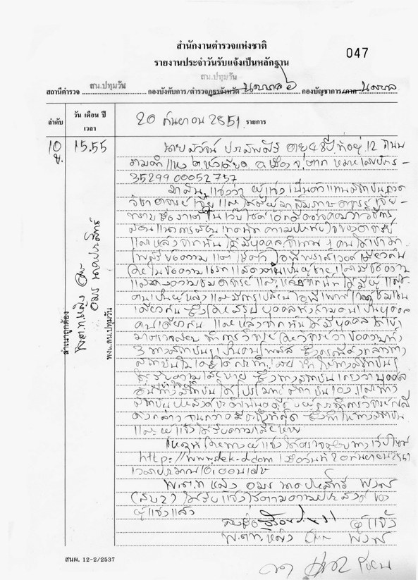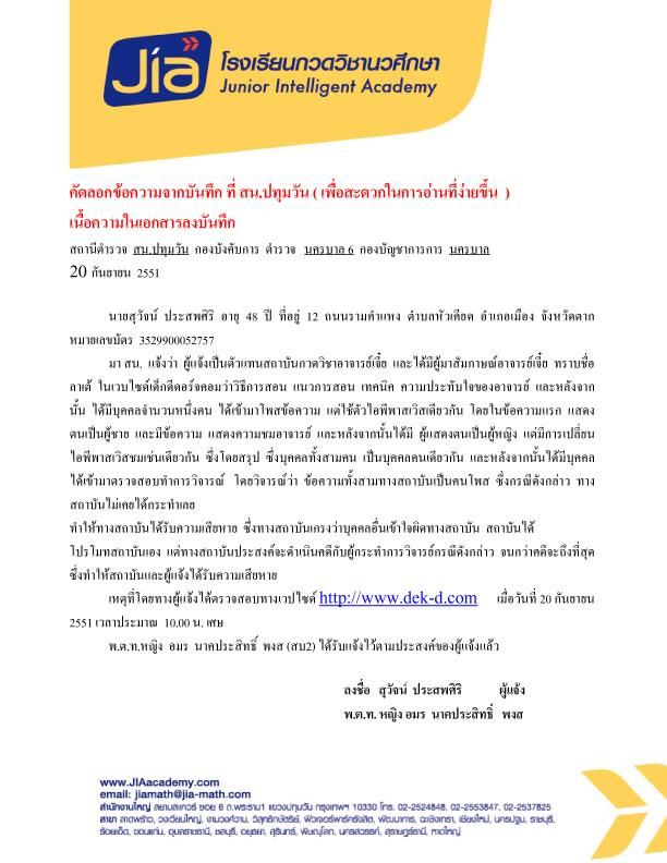 เอกสาร แจ้งความ และ การคักลอกเนื้อ จาก เอกสารลงบันทึก