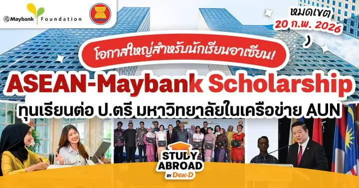 โอกาสใหญ่จากเมย์แบงก์! ‘ASEAN-Maybank Scholarship’ ทุนเต็มจำนวนเรียนต่อป.ตรี มหา’ลัยในอาเซียน