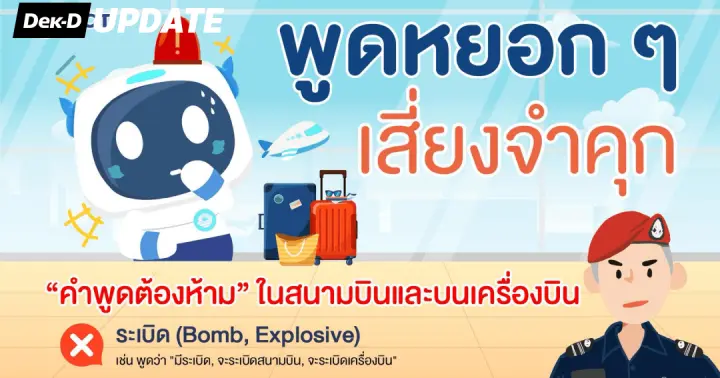 "5 คำห้ามพูด" ในสนามบิน - เครื่องบิน แค่พูดเล่น ๆ ก็เสี่ยงติดคุก!
