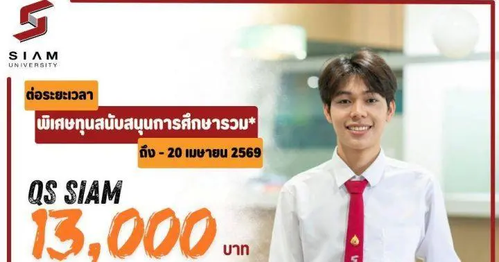 มหาวิทยาลัยสยาม เปิดรับสมัครนักศึกษาใหม่ พร้อมมอบทุนสนับสนุนการศึกษาสูงสุด 13,000 บาท