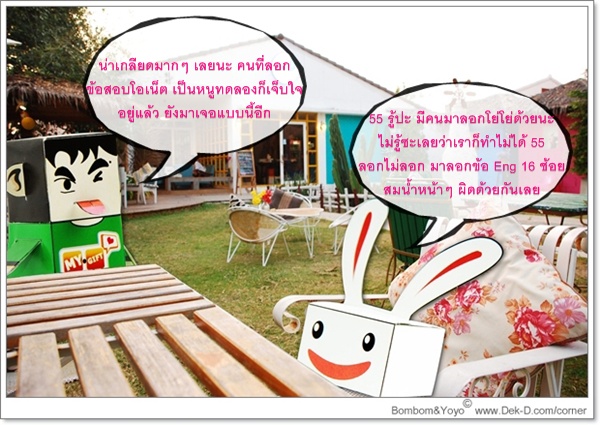 บางแห่งไม่มีบัตรสอบก็สอบได้ บางแห่งใครลืมบัตรสอบมาหมดสิทธิ์ทันที และที่น่าอนาถใจสุดๆ กับบางสนามสอบที่ลอกข้อสอบกันจะๆ ต่อหน้าต่อตาเพื่อนๆ ร่วมห้อง ด้านอาจารย์ผู้คุมสอบเห็นก็ทำเหมือนไม่เห็นซะอย่างนั้น - -"