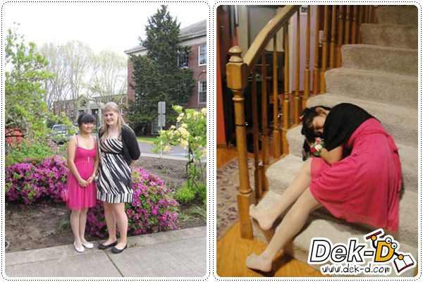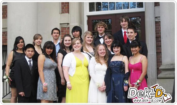 เรามาเข้าเรื่องกันดีกว่า ฮ่าๆๆ คราวนี้เราจะพูดถึง PROM !! หลายคนคงได้ยินคำนี้อยู่บ่อยๆ เป็นงานที่นักเรียนไทยอย่างเราอยากจะไปซะให้ได้ เพราะบ้านเรามันมีน้อยน่ะสิ [หรือไม่มีเลยหว่า?] ฮ่าๆๆ แต่ก่อนอื่นต้องขอเล่ารายละเอียดเล็กๆ น้อยๆ นิดนึง (เผื่อบางคนจะยังงงๆว่ามันคืออะไร) Prom = พรอม เป็นงานแดนซ์ใหญ่ประจำปี ซึ่งโรงเรียนส่วนใหญ่จะให้นักเรียน Junior หรือ ม.5 และ Senior หรือ ม.6 ไปนั่นเอง ซึ่งแตกต่างกับ Winter Formal ตรงที่ว่า Winter Formal เด็กทุกระดับชั้นในโรงเรียนสามารถไปได้ และผู้หญิงจะเป็นฝ่ายชวนผู้ชาย แต่ Prom ผู้ชายจะเป็นฝ่ายชวนผู้หญิง แต่ถ้าผู้ชายอายุน้อยซัก ม.4 ลงไป Junior กับ Senior ซึ่งเป็นผู้หญิงก็อาจจะเป็นฝ่ายชวนฝ่ายชายได้ [ข้อนี้แอบยิ้ม อิอิ เด็กๆ น่ารัก และที่สำคัญ บัตร Prom แพงกว่าค่ะ = = [เค้ามีของหวานให้กินเพียบ !] วัฒนธรรมของการออกเดทของคู่เรา ถ้าเราเป็นผู้หญิงเราต้องซื้อ Boutonniere [ดอกไม้ติดบนสูท] ให้คู่เดทของเราค่ะ แล้วผู้ชายเค้าจะซื้อ Corsage [ดอกไม้ติดข้อมือ] มาแลกกับเรา [ผู้ชายอย่าลืมถามสีเดรสของผู้หญิงนะ และผู้หญิงอย่าลืมถามสีเนคไทของผู้ชายนะคะ ออกมาคนละสี แดงกับม่วง คงจะฮาไม่น้อย ฮ่าๆๆ] งานนี้ไปกับเพื่อนๆ ประมาณ 20 กว่าคน (นับไม่ไหวค่ะ) เยอะมากๆ เป็นนักเรียนแลกเปลี่ยนบ้างและนักเรียนอเมริกันบ้าง เยอะจนตามถ่ายรูปไม่ทันเลยค่ะ อ้อ งานนี้ใครไม่มีคู่ไม่ต้องห่วง เพราะคู่เดทจริงๆ ก็เพื่อนกันทั้งนั้น พอไปถึงงาน ก็สลับกันมั่วไปหมด บางทีผู้หญิงกับผู้หญิง ผู้ชายกับผู้ชายก็มีค่ะ ก็ฮากันไป เพลงในงานส่วนใหญ่จะเป็นเพลงแนว Yo!! โย่วๆๆ ทั้งงาน 3 ชั่วโมง มีเพลงช้าประมาณ 5 เพลงค่ะ =[]= จะช้าก็ไม่ได้ช้าเลยนะ ยังมีจังหวะให้ดิ้นๆ อีกด้วย ^^ งานนี้เราออกแนวจะอวบๆ ระยะสุดท้ายนิดนึง เนื่องจากอาหารเค้าดีจริงๆ มันยั้งไม่อยู่และไม่ได้ลดน้ำหนักเลย รูปเลยดูบวมๆ นิดนึงเนอะ อิอิ งานพรอมส่วนใหญ่จะจัดวันเสาร์ในช่วง 2 วีคสุดท้ายของเมษายน ไม่ก็ 3 วีคแรกของเดือนพฤษภาคมค่ะ หลังจากนี้ Senior ก็จะได้เรียนจบแบบสมบูรณ์แบบค่ะ วันนี้พอแค่นี้ก่อนนะ ไว้คราวหน้าค่อยเจอกันใหม่ค่ะ ถ้ามีคำถามสามารถเข้ามาถามได้ที่ My.id นะคะ http://my.dek-d.com/tvxq_golf-mike หรือ ทาง hi5 http://marie-jung.hi5.com/ ค่ะ ใครกำลังจะไปพรอม หรือกำลังจะไปเป็นนักเรียนแลกเปลี่ยนที่อเมริกา ขอให้สนุกนะคะ !