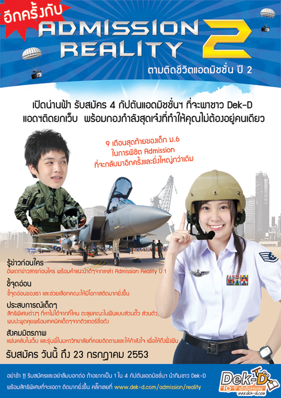สุดท้ายนี้ ได้เห็นภารกิจของเด็กแอดมิชชั่นกันไปแล้ว น้องๆ รุ่น 54 คนไหนที่อยากเป็นเหมือนกับพี่ๆ ทั้ง 3 คน ก็ขอชวนมาพิสูจน์ตัวเองได้เลยที่ โครงการ Admission Reality ปี 2 ครับ (ตอนนี้กำลังรับสมัครอยู่ คลิกที่นี่) ล่าสุดมีสายลับรายงานมาว่ากำลังได้รับความสนใจจากน้องๆ แอดมิชชั่นรุ่น 54 เป็นอย่างมาก บางโรงเรียนสนับสนุนส่งนักเรียนมาเพียบ ว้าวๆๆ