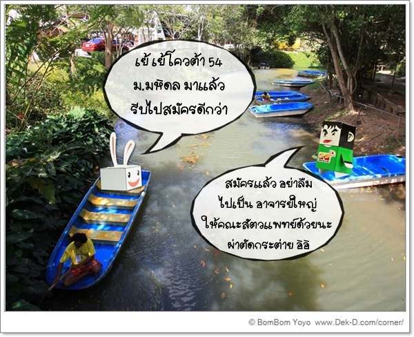 สวัสดีครับ.. โควต้า รับตรง 54 มาแล้วครับ คราวนี้เป็นคิวของมหาวิทยาลัยตัวพ่อด้านวิทยาศาสตร์ และเรื่องลี้ลับ นามว่า มหาวิทยามหิดล ที่ล่าสุดออกโควต้า 54 มารับน้องๆ ที่อยากเรียนมหิดล และไม่อยากไปลุ้นผลกดดันในรอบแอดมิชชั่นกลาง !!