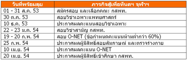 ปฏิทินภารกิจพิชิต คณะทันตแพทยศาสตร์ จุฬาลงกรณ์มหาวิทยาลัย ของกัปตันโบ๊ท