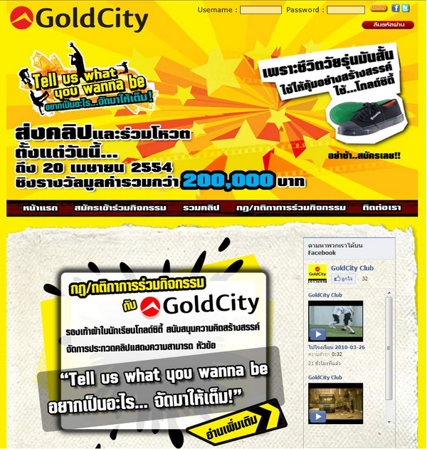 รองเท้าผ้าใบนักเรียนโกลด์ซิตี้ เปิดโอกาสให้กับวัยรุ่นที่มีความฝัน ให้กล้าคิด ให้กล้าแสดงออก กับกิจกรรมประกวดคลิป Tell us what you wanna be อยากเป็นอะไร...จัดมาให้เต็ม! กับ โกลด์ซิตี้ เพียงแค่ส่งคลิปวิดีโอโชว์ความฝัน บอกแรงบันดาลใจหรือเหตุผลที่มา และปิดท้ายคลิปด้วยสโลแกน เพราะชีวิตวัยรุ่นมันสั้น ใช้ให้คุ้มค่าอย่างสร้างสรรค์ ใช้โกลด์ซิตี้ เช่น อยากเป็นนักร้อง ก็ส่งคลิปร้องเพลงมา ถ้าอยากเป็นแดนเซอร์ ก็ส่งคลิปเต้นเจ๋งๆ หรือถ้าอยากเป็นผู้กำกับหนัง ก็ส่งหนังสั้นมา ความยาวไม่เกินหนึ่งนาทีครึ่ง ร่วมลุ้นรับทุนการศึกษาและของรางวัลมูลค่ากว่า 2 แสนบาท น้องๆ ชาว Dek-D.com ที่รู้ข่าวนี้แล้วก็อย่ารอช้านะจ๊ะ รีบส่งคลิปมาประกวดและร่วมโหวตได้ที่ www.GoldCityClipContest.com และ http://www.facebook.com/GoldCityFootwear ตั้งแต่วันนี้ 20 เม.ย.นี้เท่านั้นจ้า