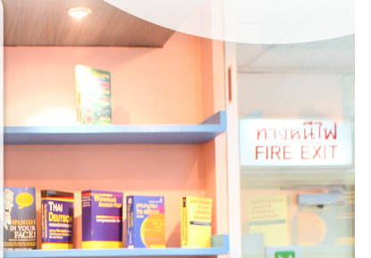 มีห้องสมุดที่เพิ่มมาใหม่ค่ะ สีสันสดใสโดยใจวัยรุ่น มากๆ หลายคนเข้ามาถ่ายรูปเยอะกว่าอ่านหนังสือ 555 ก็เป็นห้องสมุดที่จะมีทั้งหนังสือภาษาต่าง ประเทศให้น้องๆ ได้มาหยิบอ่านตามความสนใจ (ใครจะยืมกลับบ้านก็ได้นะ แต่ต้องเอามาคืน 555) นอกจากนั้นในห้องสมุดก็มีคอมพิวเตอร์ที่ใช้ประกอบ การเรียน และสำหรับเรียนย้อนหลังหากวันที่สอนสด น้องๆ เกิดเหตุฉุกเฉินไม่สามารถมาเข้าเรียน ก็มา เรียนย้อนหลังผ่านคอมพิวเตอร์ในห้องนี้ค่ะ |