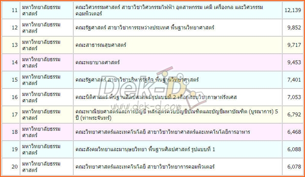 สวัสดีครับ.. มาแล้วตามคำสัญญา สำหรับ 20 สาขาที่คาดว่า (น่าจะ) ถูกเลือกเยอะที่สุด ในแอดฯ กลาง 54 มหาวิทยาลัยธรรมศาสตร์ ที่เก็บสถิติจากโปรแกรมคำนวณคะแนนแอดมิชชั่นให้ติดชัวร์ของเว็บไซต์ Dek-D.com