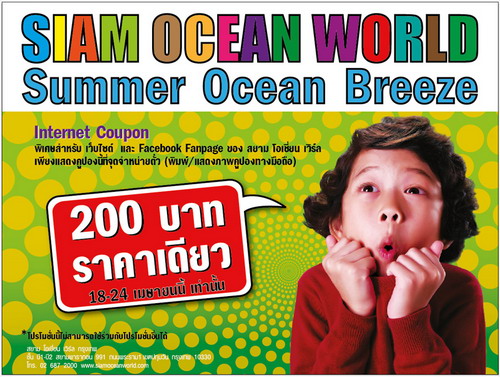 โปรโมชั่นนี้ พิเศษสำหรับ Fans Siam Ocean World ทางเว็บไซต์ และ Facebook เท่านั้น เพียงน้องๆ ปริ้นหรือแสดงภาพคูปองผ่านทางมือถือที่จุดจำหน่ายตั๋ว ก็รับสิทธิพิเศษทันทีค่าเข้าชมราคาเดียว 200 บาท โปรโมชั่นสุดพิเศษนี้ ตั้งแต่วันที่ 18-24 เมษายนนี้ เท่านั้นนะคะ น้องๆ ชาว Dek-D.com รีบคลิกเข้าไปที่ fanpage Siam Ocean World หรือที่เว็บไซต์ แล้วใช้สิทธิ์กันเลยจ้า ^^