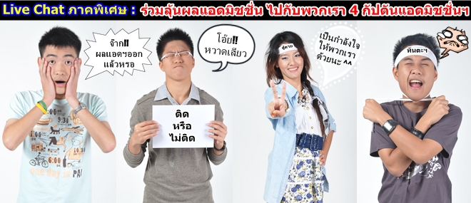 4 พ.ค. 54 บ่ายสี่โมงครึ่งเป็นต้นไป มาแชทลุ้นผลกันคร๊าบ (งานนี้พี่ๆ AR1 ก็มาช่วยลุ้นด้วยนะ..)