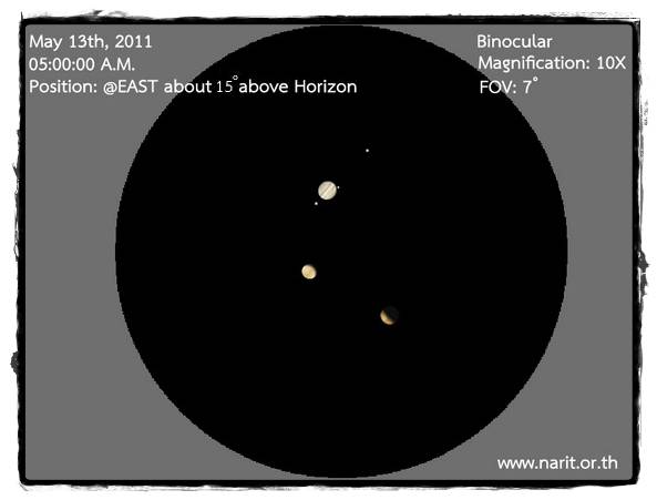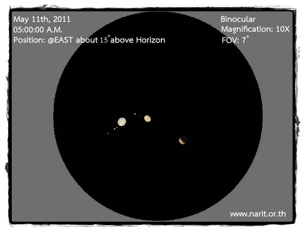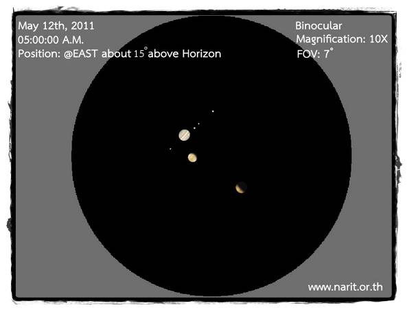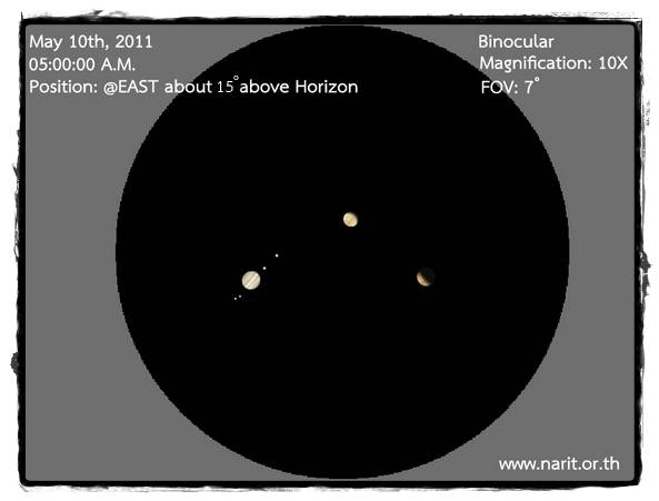 จำลองมุมมองเมื่อส่องผ่านกล้องสองตาหรือกล้องโทรทรรศน์ที่มีกำลังขยาย 10 เท่า วันที่ 11 พ.ค.