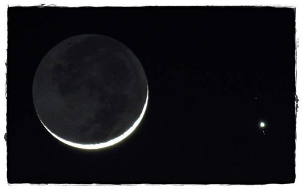 ภาพปรากฏการณ์ Earthshine บนดวงจันทร์ขณะเข้าใกล้ดาวพฤหัสบดี เมื่อ 29 ธ.ค.51