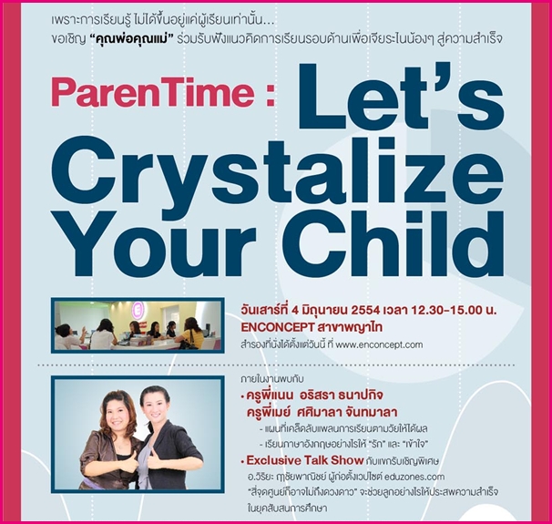 วันนี้ พี่ลาเต้ เลยขอภูมิใจนำเสนองาน Parent Time: Lets Crystalize Your Child งานเดียว ที่จัดขึ้นมาเพื่อน้องๆ หรือพ่อแม่ผู้ปกครองที่อยากวางแผนการเรียนพิเศษแบบสุดเจ๋ง!! โดยงานนี้หากนึกภาพง่ายๆ ก็จะเป็นการ ติวเข้มผู้ปกครอง ที่จะมีการบอกสูตรเด็ดเคล็ดลับการเรียนของลูกๆ รวมถึงช่วยแพลนการเรียนพิเศษตามความสนใจผ่าน Roadmap โดยแพลนทีจะวางแผนนั้นขอกบอกว่าคุ้มมากๆ เพราะเริ่มตั้งแต่ตั้งแต่ประถม จนไปถึงมหาวิทยาลัย ว้าววว