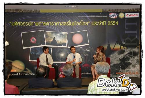โห..สวยๆ ทั้งนั้นเลย คนถ่ายนี่ก็เก่งสุดยอด แต่ถ้าดูจากตรงนี้แล้วยังไม่จุใจ น้องๆ สามารถไปดูได้ที่ จตุรัสวิทยาศาสตร์ อพวช. จามจุรีแสควร์ ซึ่งจะขนภาพถ่ายทางดาราศาสตร์ที่ชนะการประกวดเมื่อปีที่แล้วและภาพถ่ายทางดาราศาสตร์อื่นๆ ที่หาดูได้ยากจากทั่วทุกมุมโลกมาอวดให้ได้ดูกัน เห็นแล้วจะต้องตะลึงแน่นอน ซึ่งสามารถไปดูได้ตั้งแต่วันนี้จนถึง 8 มิถุนายนนี้ค่ะ น้องๆ คนไหนเรียนพิเศษอยู่ใกล้ๆ ก็อย่าลืมแวะไปดูกันล่ะ มีปีละครั้งเองนะคะ งานแถลงข่าว เชิญผู้สนใจร่วมส่งภาพถ่ายดาราศาสตร์ประกวดในหัวข้อ "มหัศจรรย์ภาพถ่ายดาราศาสตร์ในเมืองไทย" ประจำปี 2554