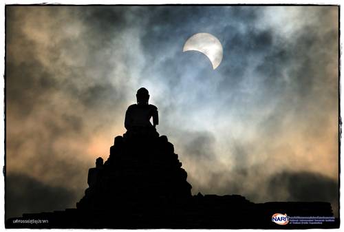 รางวัลชนะเลิศ ประเภทปรากฏการณ์ทางดาราศาสตร์ ชื่อภาพ มหัศจรรย์สุริยุปราคา โดย วินนิวัตร ไตรตรงสัตย์ สถานที่ วัดไชยวัฒนาราม จ.อยุธยา