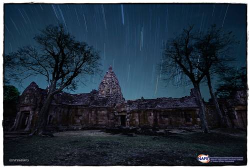 รางวัลชนะเลิศ ประเภทวิวธรรมศาสตร์กับดาราศาสตร์ ชื่อภาพ ปราสาทแสงดาว โดย เสฏฐวุฒิ ชาลาบุตระ สถานที่ ปราสาทหินพนมรุ้ง