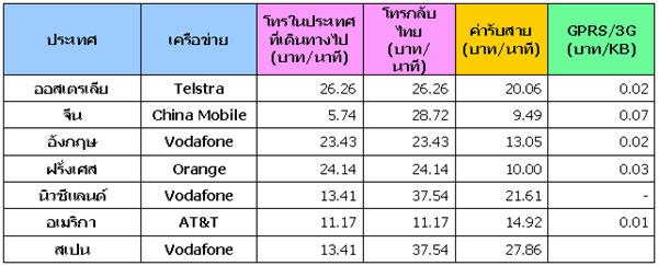 อัตราดังกล่าว เป็นอัตราค่าบริการของลูกค้าแบบรายเดือน ณ วันที่ 1 มิ.ย. 54 อาจเปลี่ยนแปลงได้ตามอัตราแลกเปลี่ยนเงินตราระหว่างประเทศ ณ วันที่ใช้งาน