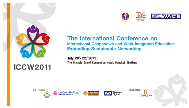 สวัสดีครับ.. ช่วงนี้ประเทศไทยของเราโด่งดังในระดับโลกหลายงานเลยนะครับ ล่าสุดเป็นคิวของวงการศึกษากันบ้าง เพราะน้องๆ รู้หรือไม่ครับว่า ประเทศไทยเตรียมเป็นเจ้าภาพจัดประชุมระดับนานาชาติ การประชุมสหกิจศึกษานานาชาติ 2011 The International Conference on International Cooperative and Work-Integrated Education: Expanding Sustainable Networking (ICCW 2011)