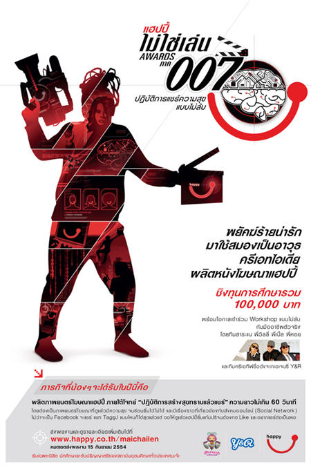 ขอชวนน้องๆ นักศึกษา มาใช้สมองเป็นอาวุธ ครีเอทไอเดีย เข้ามาร่วมประกวด ผลิตภาพยนตร์โฆษณาความยาวต้องไม่เกิน 60 วินาที ชิงทุนการศึกษารวม 100,000 บาท ภายใต้โจทย์ ปฏิบัติการสร้างสุขทราบแล้วแชร์ โดยต้องเป็นภาพยนตร์โฆษณาที่ดูแล้วมีความสุข จนซ่อนยิ้มไว้ไม่ได้ และมีเรื่องราวที่เกี่ยวข้องกับสังคมออนไลน์ (Social Network) ไม่ว่าจะเป็น Facebook หรือ twitter จะแชร์ หรือจะแชท แบบไหนก็ได้สุดแล้วแต่ ขอให้ดูแล้วแฮปปี้จนต้องขอกด Like และอยากแชร์ต่อ เป็นพอจ้า