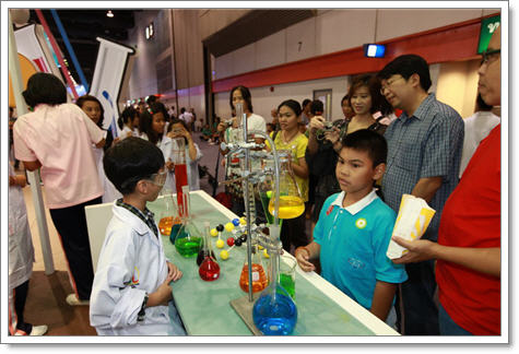 จุดต่อไปที่พลาดไม่ได้ก็คือ นิทรรศการมหัศจรรย์เคมี พบตารางธาตุมหัศจรรย์ที่ไม่ได้ยากอย่างที่คิด พบการทดลองเคมีสนุกๆ และยังมีกิจกรรมบนเวทีด้วย ที่น่าตื่นตาตื่นใจสุดๆ ยังมีที่ นิทรรศการบริหารจัดการขยะ ซึ่งได้นำเอาขยะเหลือใช้มาสร้างเป็นหุ่นพี่ไดโนตัวโตๆ เพื่อให้เห็นมูลค่าของขยะที่เราไม่เคยคิด