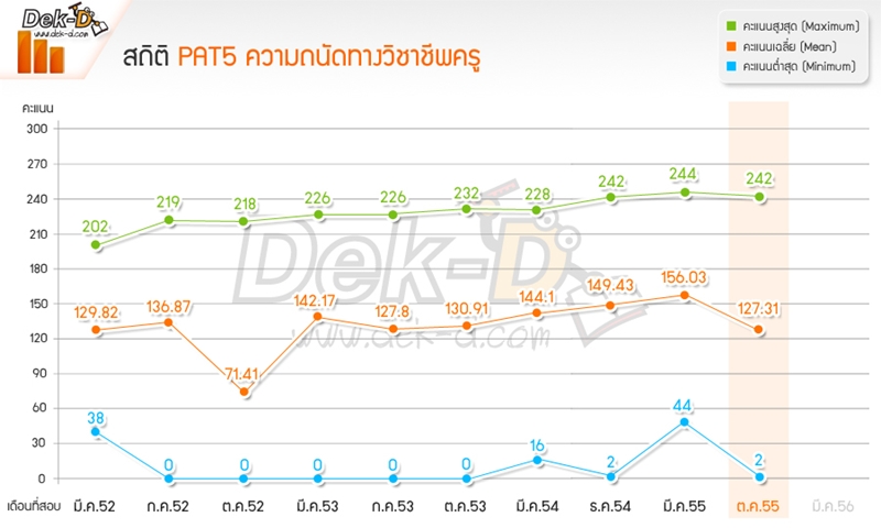 พี่ลาเต้ ชวนสังเกตุ - น้องๆ เห็น "เหวนรก" ไหมครับ 555 กราฟคะแนน PAT 5 รอบตุลาคม 52 (3/52) ไงล่ะ อิอิ สาเหตุที่กราฟออกมาแบบนี้ ก็เพราะว่าแต่เดิมวิชา PAT 5 เป็นปรนัย 4 ตัวเลือก แต่รอบนั้นเป็นรอบที่ข้อสอบถูกเปลี่ยนจากปรนัย 4 ตัวเลือกมาเป็นเชื่อมโยง (แบบเดียวกับ GAT) ซึ่งก็เจ๊งไม่เป็นท่า เพราะคะแนนเน่าสนิททั้งประเทศ จนรอบต่อไปข้อสอบจึงปรับไปเป็นปรนัย 4 และ 5 ตัวเลือกแบบเดิม และก็เป็นไปตามคาดคะแนนกลับมาอัพ 100+ เหมือนเดิม ฮ่าฮา - คะแนน PAT ครูจะมีน้ำหนักอยู่ที่ 30% ในการยื่นคะแนนแอดมิชชั่นครับ ดังนั้นหากใครที่โชคร้ายได้ PAT 5 น้อยมากๆ ให้ไปเร่งกู้หน้าที่วิชา GAT เพราะวิชานั้นมีน้ำหนัก 20% ถึงแม้จะต่างกันถึง 10% แต่ก็เป็นวิชาสุดท้ายที่จะช่วยได้ครับ เพราะวิชาอื่นไม่มีแล้ว T^T |