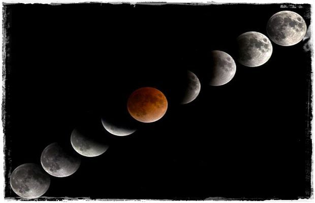 ภาพแสดงลำดับการเกิดปรากฏการณ์จันทรุปราคาเต็มดวง
