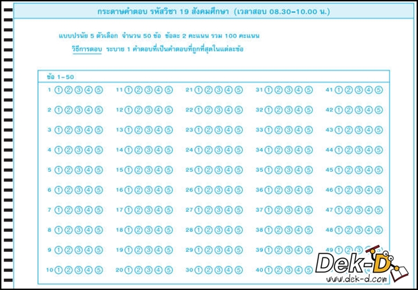 สังคมศึกษา วิชานี้เหมือนภาษาไทยแบบเป๊ะๆ โดยทั้งฉบับจะมีทั้งหมด 50 ข้อ ข้อละ 2 คะแนน รวม 100 คะแนนเต็ม เป็นปรนัย 5 ตัวเลือกทั้งฉบับ (คำนวณเวลาทำ ตกข้อละ 1 นาทีรวมทั้งคิด และฝนคำตอบ)