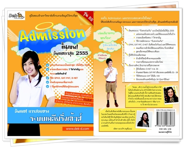 ลาเต้ลิขิต : งงกับแอดมิชชั่น และสอบตรงใช่ไหม ?? หากใช่รีบไปจับจองหาซื้อ หรือยืมเพื่อนอ่านกันได้เลย สำหรับหนังสือขายดีของเด็ก ม.6 แอดมิชชั่นขั้นเทพ เล่ม 2 อัพเดทใหม่ล่าสุดเฉพาะเด็กแอดฯ 55 ที่รวบรวมเทคนิคพิชิตคณะในฝันทั้งสอบตรง เคลียริ่งเฮ้าส์ ไปจนถึงสูตรการเลือกคณะให้ติดชัวร์ๆ หากซื้อได้ที่ SE-ED ทุกสาขา หรือสั่งออนไลน์ผ่านเว็บ Dek-D คลิกที่นี่ ได้เลย