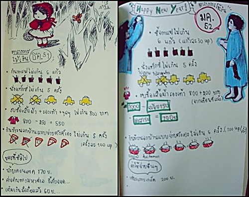 แต่ถ้าอยากให้ฝึกสมองมากขึ้นอีกนิดก็ต้องคำนวณเอง จะทำสมุดรายรับรายจ่ายเองก็ได้ ตีเส้น วาดรูปสวยๆ ใส่ไป ทำช่องร่ายรับ รายจ่าย แปะบิล แปะใบเสร็จลงไปด้วย แล้วคำนวณเองทุกวันก็ได้ หรือจะทำแบบไร้เส้น ไร้ช่อง วาดรูปตามชอบใจ เน้นความคิดสร้างสรรค์แบบของคุณมะโมก็ได้ค่ะ