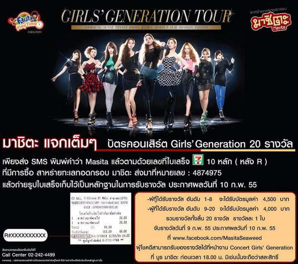 รางวัลละ 1 ใบ จับรางวัลวันที่ 9 ก.พ.55 ประกาศผลวันที่ 10 ก.พ. 55 ที่ www.facebook.com/MasitaSeaweed ผู้โชคดีสามารถรับของรางวัลได้ที่หน้างานคอนเสิร์ตGirls
