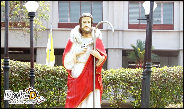 (9) จุดเด่นของโรงเรียน>> อย่างแรกเลยเป็นโรงเรียนคริสต์ พื้นที่ของโรงเรียนกว้างขว้างมากกก. มีสนามหญ้าขนาดใหญ่อยู่ด้านหน้าโรงเรียน และมีรูปปั้นท่านนักบุญเปโตร องค์อุปถัมภ์ของโรงเรียนตั้งอยู่บริเวณวงเวียน