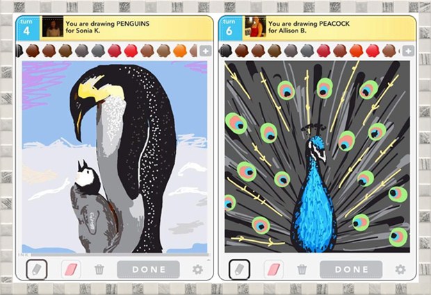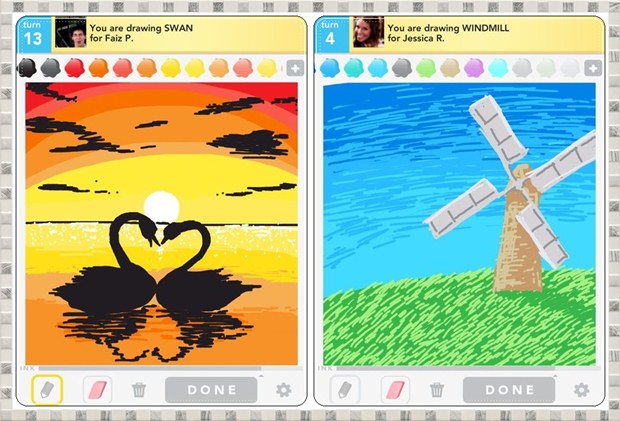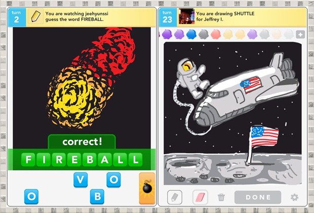 โดยเมื่อเราวาดเสร็จ โปรแกรมจะส่งไปยังคนที่เล่นคู่กับเรา (ดึงเพื่อนจาก facebook หรือให้แรนดอมจากคนทั่วโลกก็ได้) เราก็รอให้เค้าทายคำศัพท์ของเรา และเค้าจะวาดรูปกลับมาให้เราทาย สลับกันไปเรื่อยๆ เลเวล stat ก็จะอัพขึ้นเรื่อยๆ แต่ถ้าจนปัญญาตอบไม่ได้จริงๆ จนต้องยอมแพ้ ก็จะต้องกลับมาเริ่มต้นที่1 ใหม่ เรียกว่าวินาทีนั้น ถ้าคะแนนสูงๆ แล้วต้องกลับไปเริ่มต้นใหม่ อาจมีเคืองกันลยทีเดียว