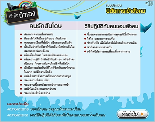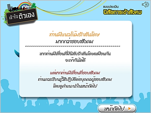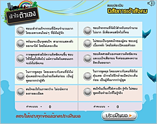 ตัวอย่างแบบทดสอบ หัวข้อ "นิสัยการเข้าสังคม"