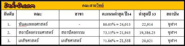 3 อันดับคณะสายวิทย์ที่คะแนนต่ำสุด สูงที่สุดปี 54