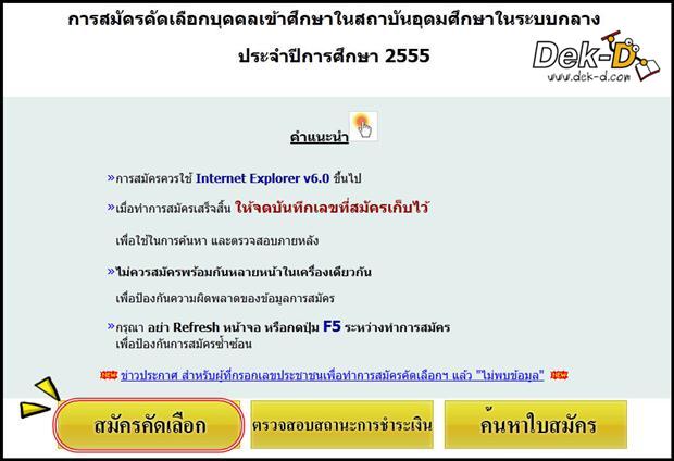 2.1 ข้อมูลที่จำเป็นในการสมัคร - ชื่อ นามสกุล รหัสประชาชน - ชื่อโรงเรียน รหัสโรงเรียน 10 หลัก หากไม่รู้รหัสโรงเรียนตัวเอง ควรสอบถามอาจารย์แนะแนวนะคะ - เลขประจำตัวนักเรียน - หลักสูตร ให้เติมว่า "สามัญ" ปีการศึกษาให้เติมว่าปี " 2554" ค่ะ เด็กซิ่วใส่ 2553 นะ - ที่อยู่ที่ติดต่อได้ + เบอร์โทรศัพท์ ทั้งบ้านและมือถือ - เลขที่นั่งสอบ GAT/PAT และ O-NET สำหรับ GAT/PAT ให้ใส่เลขที่นั่งสอบทุกรอบที่เข้าสอบ เพราะเรื่องคะแนนที่ดีที่สุด ระบบจะดึงไปเองค่ะ 2.2 คณะที่ประสงค์จะเลือก - 4 อันดับ (เลือกอะไรก็ได้ตามใจเลย) - อันดับ 1 100 บาท อันดับต่อไป อันดับละ 50 บาท ถ้าสมัคร 4 อันดับ ก็จ่าย 250 บาท