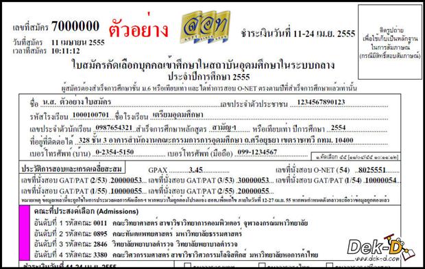 (4) พิมพ์ใบสมัครออกมา เพื่อเตรียมตัวไปจ่ายเงิน โดยก่อนเอาไปจ่ายเงิน ต้องลงลายมือชื่อผู้สมัครที่ด้านข้างช่องจำนวนเงินด้วยนะ ที่สำคัญ คือ จ่ายเงินให้ตรงเวลา ซึ่งทาง สอท. เปิดระยะเวลาจ่ายเงินให้ถึง 2 อาทิตย์ อาจจะไม่มีการยืดเวลาชำระเงินนะ และถ้าพลาดจ่ายเงินแอดมิชชั่นกลางนี้ เท่ากับว่าเราหมดสิทธิ์แอดมิชชั่นแล้วจริงๆ !!
