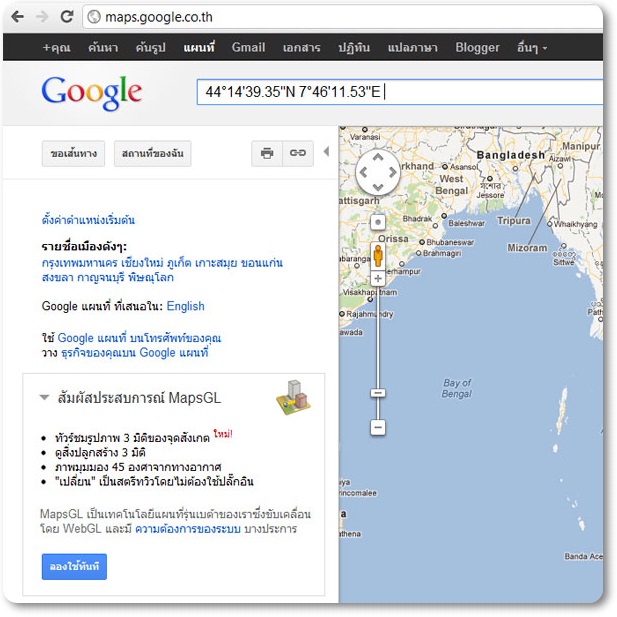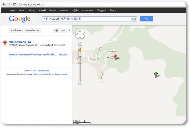 2. พิมพ์ 44°14'39.35"N 7°46'11.53"E ใส่เข้าไปตรงช่อง search แล้วEnter