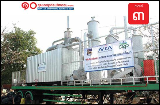 ลำดับ 3 โมบายเบิร์น" เตาเผาขยะเคลื่อนที่ (บริษัทเชียงใหม่ เอ็นไวรอนเมนท์ โปรเทค จำกัด ร่วมกับบริษัท ล็อกซเล่ย์ จำกัด (มหาชน))