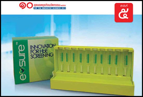 ชุด E-sure นี้(ออกเสียงดีๆ นะ ><) เป็นนวัตกรรมระดับโลกด้านผลิตภัณฑ์และกระบวนการตรวจคัดกรองพาหะธารัสซีเมีย ฮีโมโลบินอี โดยชุดตรวจสอบนี้จะให้ผลการตรวจสอบที่ชัดเจน ถูกต้อง และมีความสะดวกในการแปลผลและมีขั้นตอนที่ง่ายและมีประสิทธิภาพมากกว่าชุดตรวจในปัจจุบัน ทำให้ประชาชนสามารถเข้าถึงการตรวจพาหะธาลัสซีเมียได้มากขึ้นด้วย