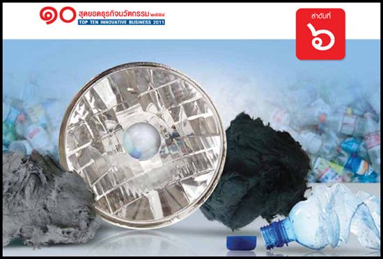 ลำดับ 6 อี คอมโพสิม วัสดุ BMC จากขวดเพทใช้แล้วสำหรับผลิตโคมไฟรถยนต์ (บริษัท ไทยโดโน-เกน เกน เคมีคอล จำกัด)
