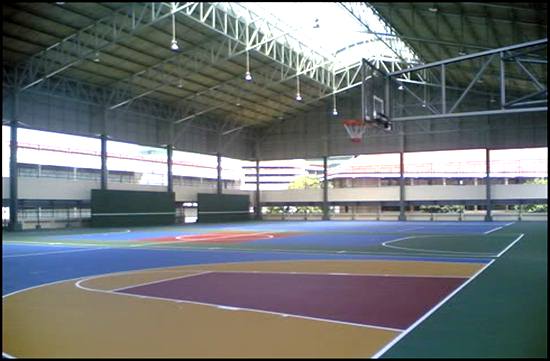- สนามกีฬาในร่ม อยู่บริเวณชั้นบนของโรงอาหาร พื้นปูด้วยยางสังเคราะห์ ประกอบด้วยสนาม ฟุตซอล+วอลเล่ย์บอล 1 สนาม สนามบาส 1 สนาม และ สนามเทนนิส 2 สนาม