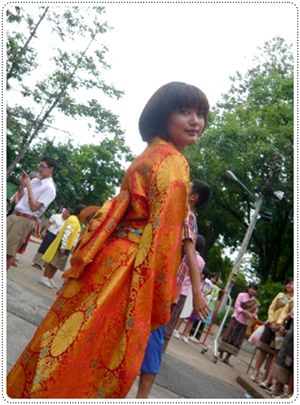 ส่วน ม.ปลาย ผู้หญิงจะเป็นเชิ้ตขาวแขนตุ๊กตา ผู้ชายเชิ้ตขาวกับกางเกงสีน้ำตาล ปักคล้ายกับของม.ต้น แต่บนสุดเป็นตราพระธาตุขามแก่น สัญลักษณ์ของโรงเรียนค่ะ อ้อ...ที่ขาดไม่ได้เลยคือปักข้าวหลามตัดด้วยด้ายสีน้ำเงินบนปกเสื้อซ้ายตามความแก่ของอายุค่ะ 555+