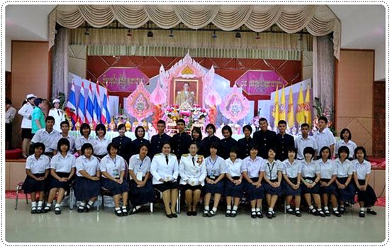 (2) สีประจำโรงเรียน>> น้ำเงินแดง