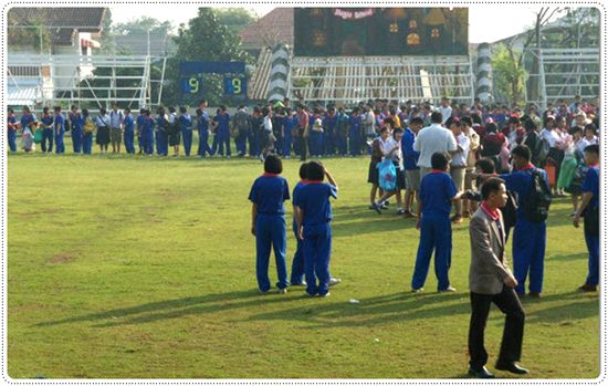 (4) กิจกรรมสุดฮิตหลังเลิกเรียน >> ส่วนใหญ่ถ้าไม่จับกลุ่มทำนู่นนี่นั่นกันตามม้าหินอ่อน ก็จะเล่นกีฬา พวกตะกร้อ บาสเก็ตบอล แฮนบอล วอลเล่บอล แล้วก็เตะฟุตบอลค่ะ