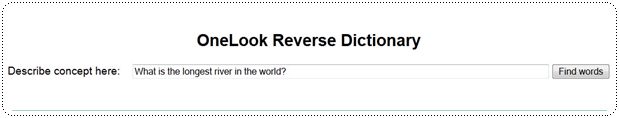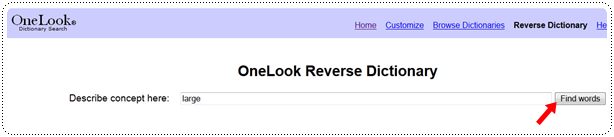ก่อนอื่น พี่มิ้นท์ต้องมีตัวช่วยค่ะ สำหรับเครื่องมือในวันนี้ พี่มิ้นท์ขอยกความดีความชอบให้กับโปรแกรม OneLook Reverse Dictionary ซึ่งโปรแกรมนี้เป็นโปรแกรมคล้ายๆ ดิคชันนารี แต่ที่พิเศษไปกว่าปกติ คือ ผลของการเสิร์ชจะออกมาเป็นคำศัพท์ที่เกี่ยวข้อง ทั้งทางตรงและทางอ้อม โดยสิ่งที่เสิร์ชนั้นสามารถใส่ได้ทั้ง "คำศัพท์" "วลี" หรือเป็น "ประโยค" เลยก็ได้ เค้าหามาให้เราได้หมดค่ะ อยากเล่น คลิกเลย คราวนี้พี่มิ้นท์จะมาสาธิตความเจ๋งให้ดูแบบละเอียดยิบ