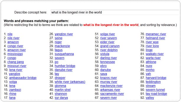 เสิร์ชแบบคำถามได้ด้วย แต่ต้องเป็นคำถามที่ไม่ซับซ้อนมาก ยกตัวอย่าง เช่น What is the longest river in the world?
