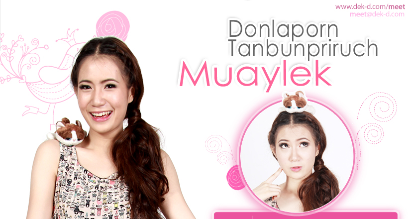 | | สวัสดีค่ะ ชื่อ ดลพร แทนบุญไพรัช ชื่อเล่นชื่อ หมวยเล็ก ค่ะ อายุ 18 ปี ค่ะ ตอนนี้กำลังศึกษาที่ ม.เกษตรศาสตร์ ชั้นปีที่ 1 คณะมนุษยศาสตร์ค่ะ หมวยเป็นคนที่ถ้าดูจากภายนอกคนอื่นจะบอกว่า หมวยหยิ่งมาก แต่ถ้ารู้จักหรือได้คุยกันแล้วจะรู้ว่าหมวยรั่วมาก โก๊ะๆ เพื่อนๆ ที่มหาวิทยาลัยก็ยังบอกว่า ตอนแรกก็ไม่กล้าคุยกับหมวย เหมือนกัน แต่พอได้คุยแล้วถึงรู้ว่าหมวยพูดเก่ง ฮาแตก ฮ่าๆๆ ภาพยนตร์ที่ชอบ : หมวยชอบดูหนังผีค่ะ หนังรัก โรแมนติกก็ชอบ แต่ถ้าไปดูกับเพื่อนๆ ไม่ค่อยดูหนังผีกัน เพราะเพื่อนกลัว ที่จริงเราก็กลัวไง แต่ดูหลายคน ก็เลยไม่กลัว ฮ่าๆ เรื่องล่าสุดที่ไปดูคือ Snow White and the Huntsman คำอุทานติดปาก : เวรกรรม! เฮ้ย! ตายห่าแล้ว! ไอดอลคนโปรด : ขอเป็นคนใกล้ตัวที่สุด คือคุณพ่อค่ะ เพราะว่าเราได้ใช้รับรู้ชีวิตของเขามาตลอด พ่อไม่เคยท้อ ไม่ว่าจะมีอุปสรรคแค่ไหน เขาเป็นคนที่มีความอดทนมาก แต่เขาจะไม่เคยสอนหมวยกับพี่ตรงๆ เขาจะทำเป็นตัวอย่าง แล้วเหมือนให้เราสังเกตเอง เหมือนจะให้เราลองผิดลองถูกกับชีวิต ท้ายที่สุด เราล้ม สิ้นหวัง ไม่เหลืออะไร แต่เราก็ยังมีเขาคอยสนับสนุนเราต่อไป เรื่องที่ภูมิใจ : คงเป็นเรื่องสอบติดมหาวิทยาลัยเนี่ยแหละค่ะ เพราะตลอดเวลาตั้งแต่เด็กมา หมวยเรียนแต่เอกชน คือไม่เคยไปสอบแข่งขันเข้าโรงเรียนรัฐฯ จนมา ม.ปลาย เราตั้งใจเรียน เริ่มโต เริ่มสนใจอนาคตตัวเองละว่า เราต้องสอบให้ติดมหาวิทยาลัยรัฐ ที่สำคัญคือต้องเป็น คณะที่เราชอบ แล้วในที่สุดหมวยก็ทำมันได้ ซึ่งเราไม่เคยเรียนพิเศษเลิกดึกดื่น ร้องไห้กับหนังสือเป็นกอง ที่เราต้องอ่าน แต่ผลสุดท้ายก็คุ้มกับมันจริงๆ ค่ะ นิยามตัวเองสามคำ : รั่ว โก๊ะ เฉิ่ม | ![]() | งานอดิเรก : ปกติก็เดินเล่น ช้อปปิ้ง ทั่วไปค่ะ บางทีไม่มีเงินเราขอแค่มองก็มีความสุขแล้วปะ 555 ผู้หญิงเราก็ชอบซื้อของเป็นธรรมดา เดินๆ เพลินๆ ฆ่าเวลาไปด้วยค่ะ กีฬาที่ชอบ : บาสเก็ตบอลค่ะ แต่ไม่ใช่เพราะว่าหมวยเล่นเก่งหรอกนะ เพราะเราชอบดูนักบาสเล่นมากกว่า มันสนุกดี ของสะสมของหมวยเล็ก : สมุดน่ารักๆ ลายสวยๆ เจอหมวยเล็กได้ที่นี่ : เซนทรัลปิ่นเกล้าค่ะ เพราะบ้านอยู่แถวนั้น ผลงานที่ผ่านมา : หมวยเคยประกวด utip freshy idol 4 ที่ผ่านมาค่ะ เข้ารอบ 15 คนสุดท้าย และก็เคยประกวดสาว pop davance กับอาจารย์ปิง ดาวองก์ปีที่ผ่านมาค่ะ ได้เป็นรองสาวป็อป แล้วก็ได้รางวัลขวัญใจสื่อค่ะ ความประทับใจกับ utip freshy idol 4 : หมวยเข้ารอบ 15 คนยูทิป ถึงเราจะไม่ได้ตำแหน่งอะไร แต่เราเข้ามาถึงจุดนี้ รู้สึกว่า สิ่งที่ได้มันมากกว่านั้นค่ะ เพราะว่าเวทีนี้ทำให้หมวยได้รู้จักผู้คนมากม