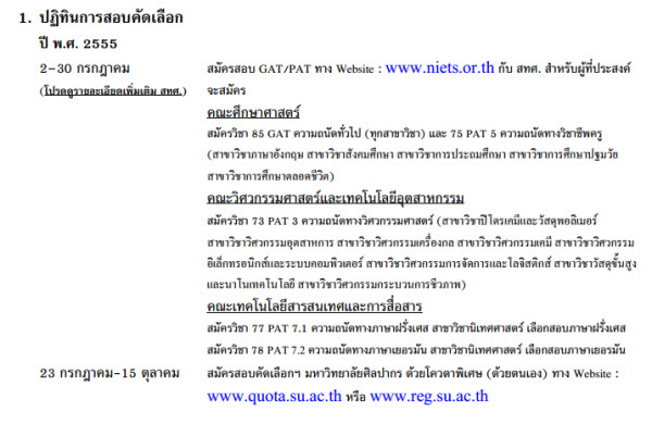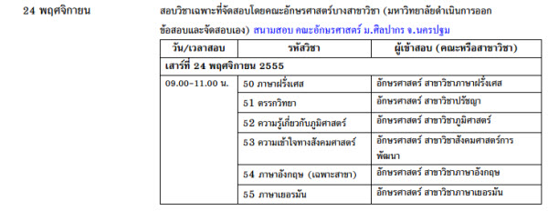 - ม.ศิลปากรจัดสอบเอง (บางคณะ)