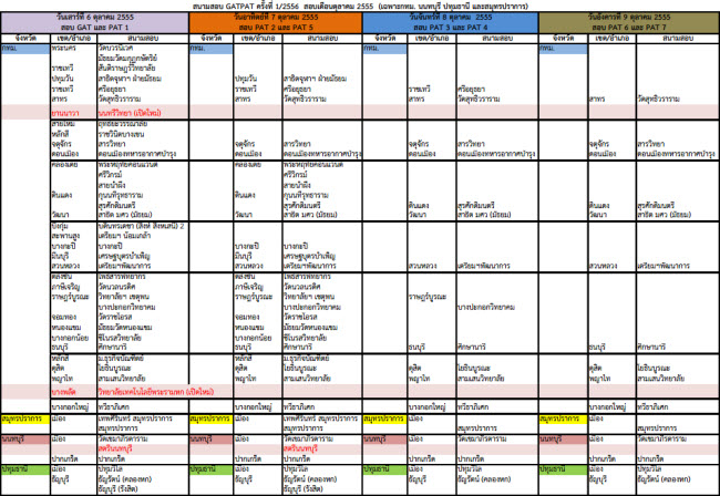 - วางใจได้ ผู้ที่สมัครสอบ GAT PAT 1/56 ทุกคนจะมีสนามสอบให้สอบแน่นอน เพราะหากสนามสอบเต็ม สทศ.ก็จะจัดหาสนามสอบให้จนได้